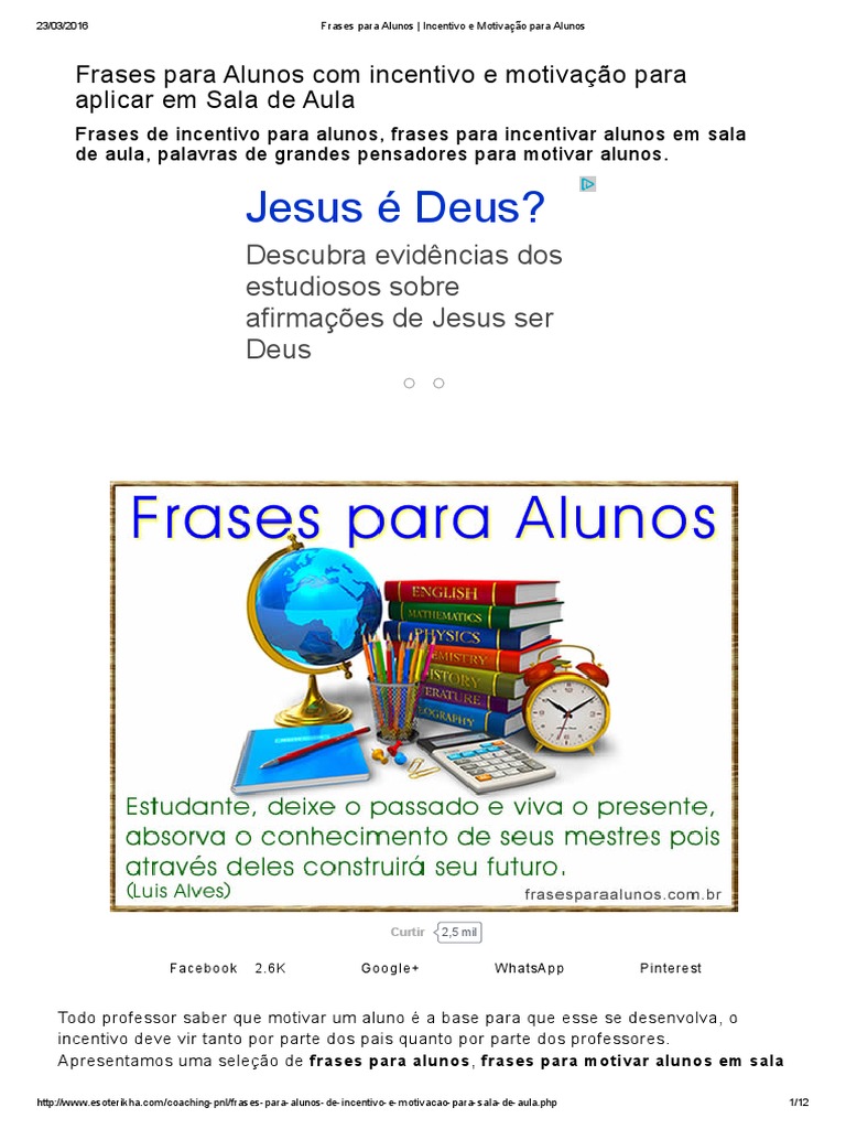 Frases Para Alunos Incentivo E Motivação Para Alunos Escolas https://pt.scribd.com/document/306423343/Frases-Para-Alunos-Incentivo-e-Motivacao-Para-Alunos
