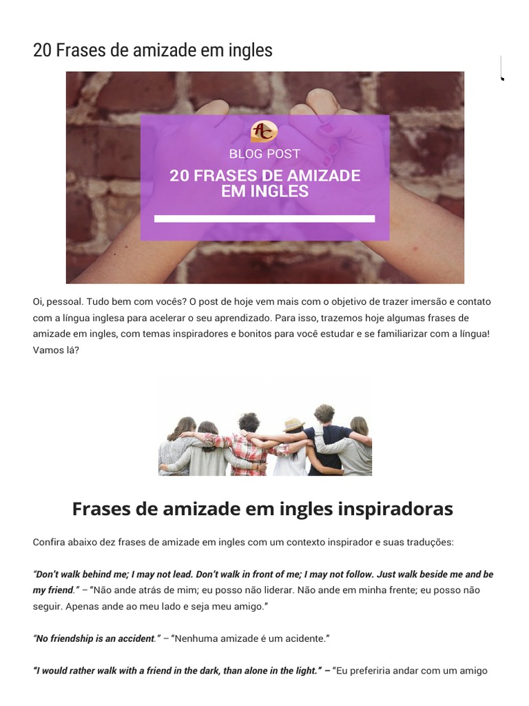 20 Frases De Amizade Em Ingles Inglês Com Ana Cuder https://www.scribd.com/document/358858288/20-Frases-de-Amizade-Em-Ingles-Ingles-Com-Ana-Cuder