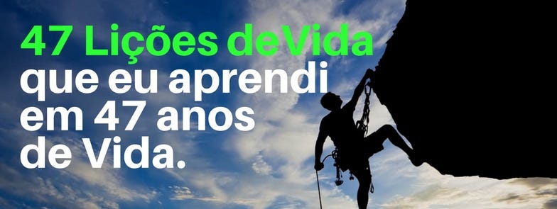 47 Lições De Vida Que Eu Aprendi Em 47 Anos De Vida https://medium.com/@bizrevolution/47-li%C3%A7%C3%B5es-de-vida-que-eu-aprendi-em-47-anos-de-vida-be71c2f74d2f